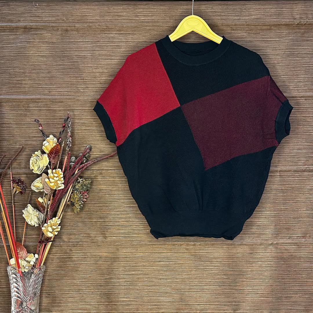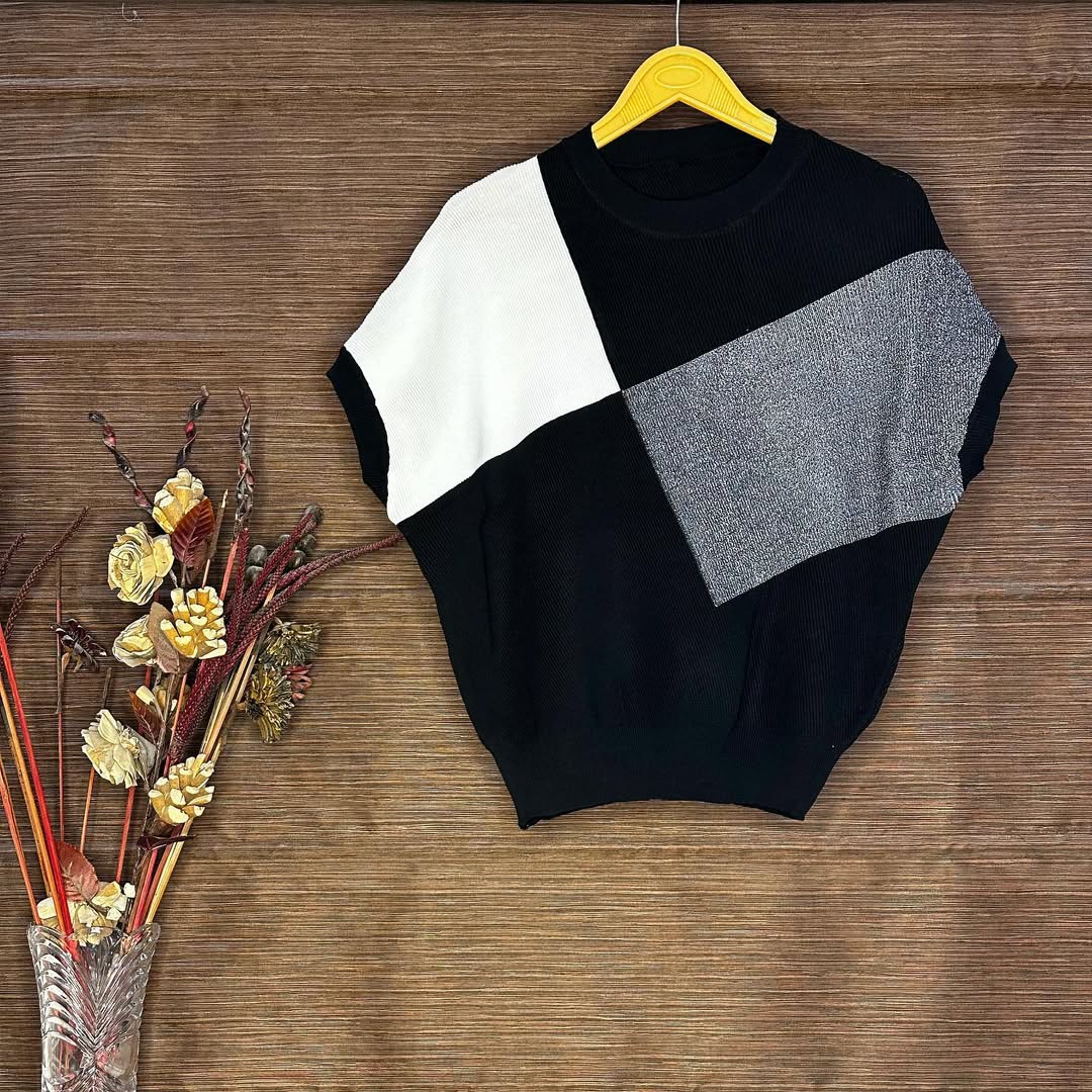 Add a pop of bold style to your wardrobe with this colorblock knit top featuring a striking combination of yellow, and black panels. The soft ribbed knit fabric offers comfort, while the oversized fit gives it a relaxed and trendy silhouette.