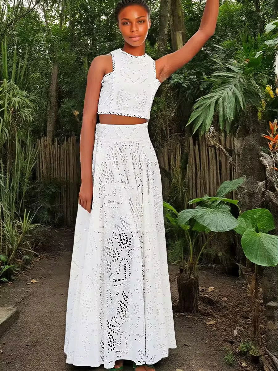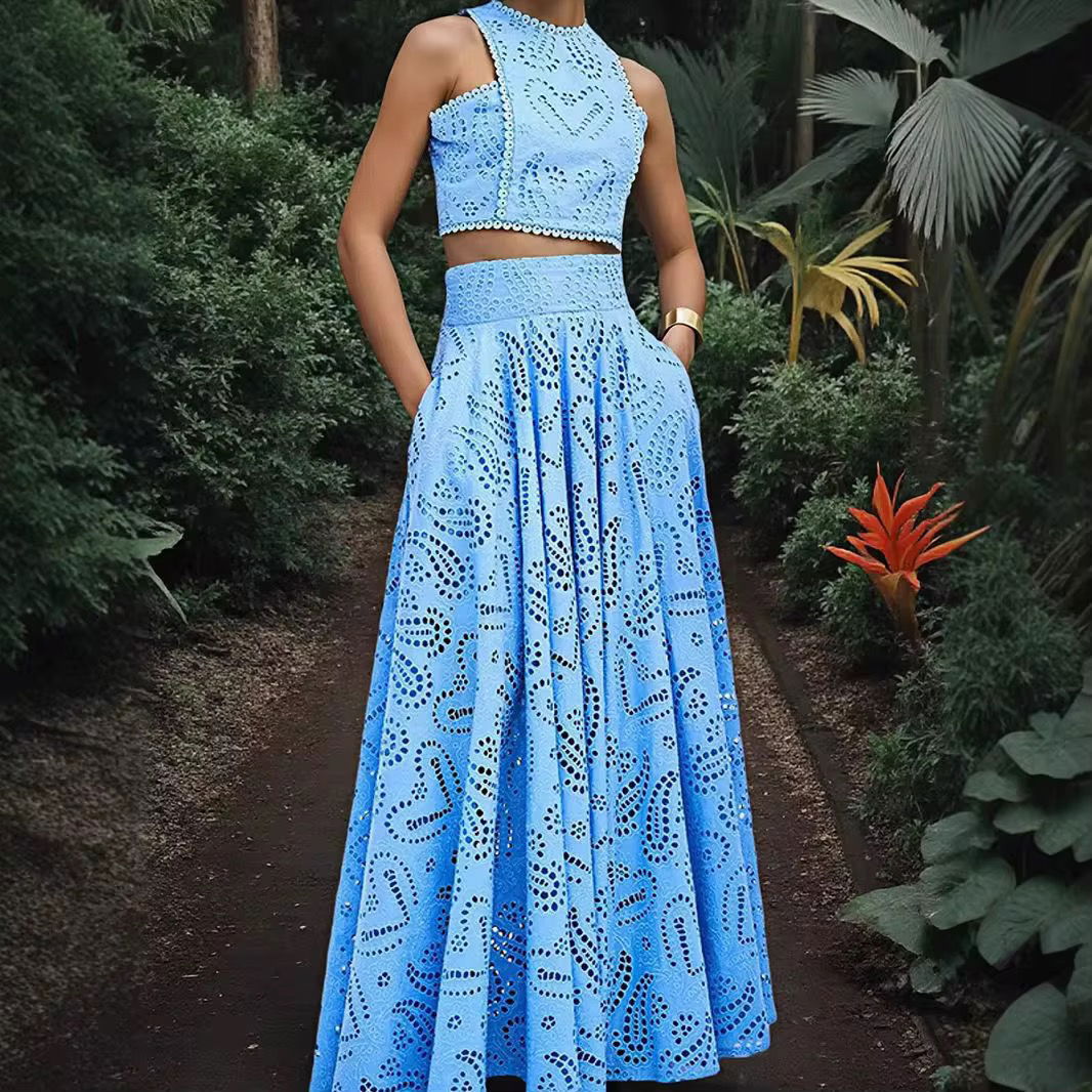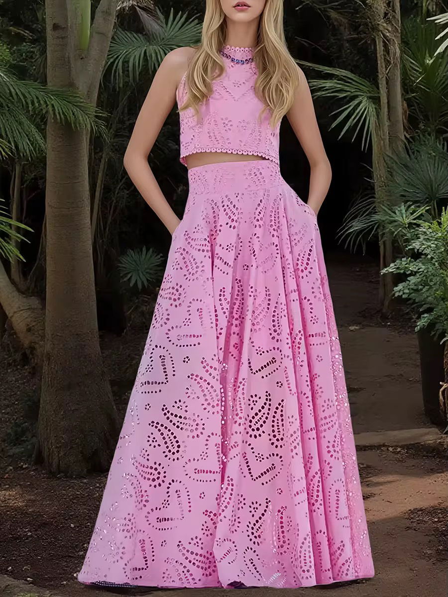 Style: Sleeveless Crop Top + Flared Maxi Skirt