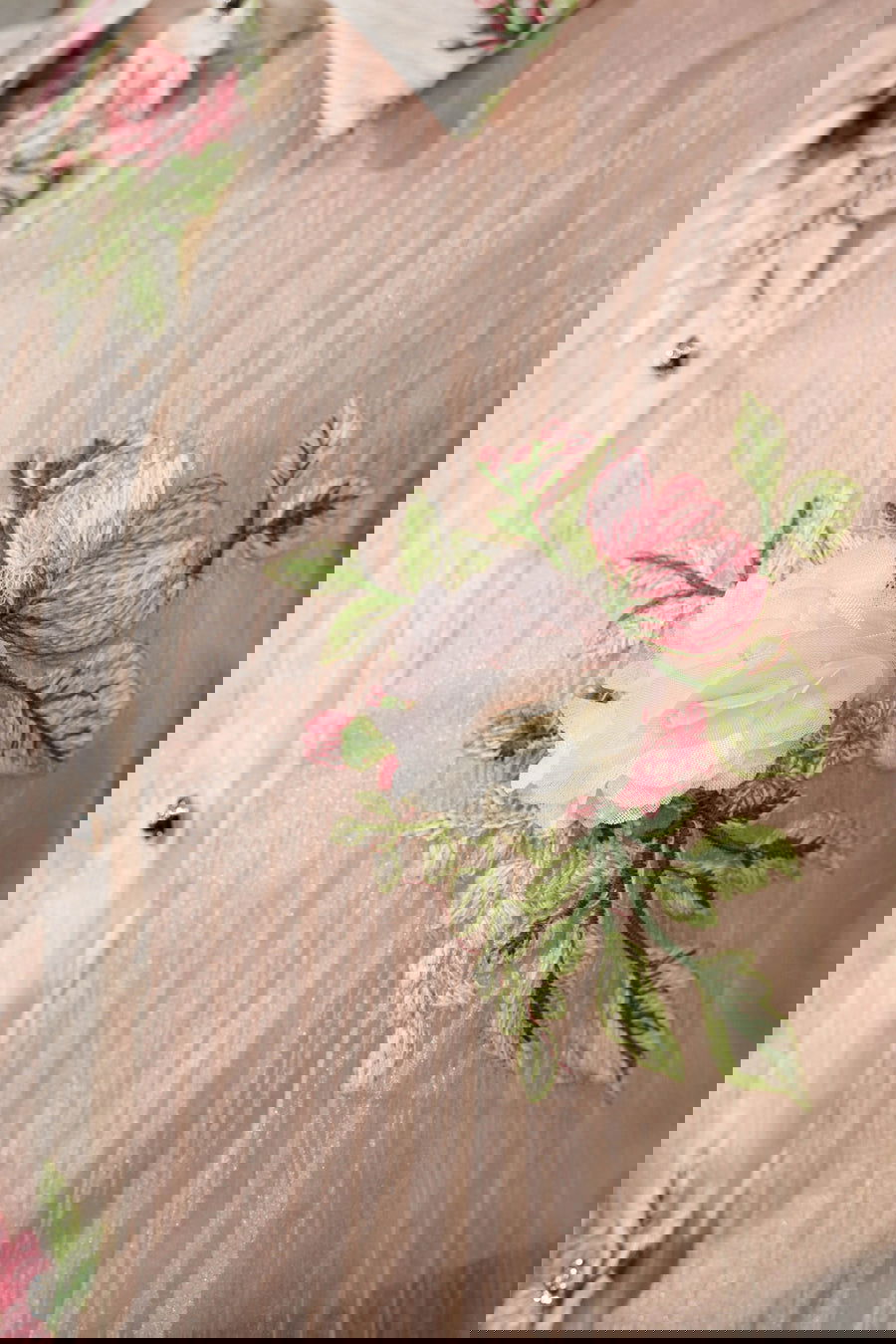 - Embroidery: 3D floral detailing